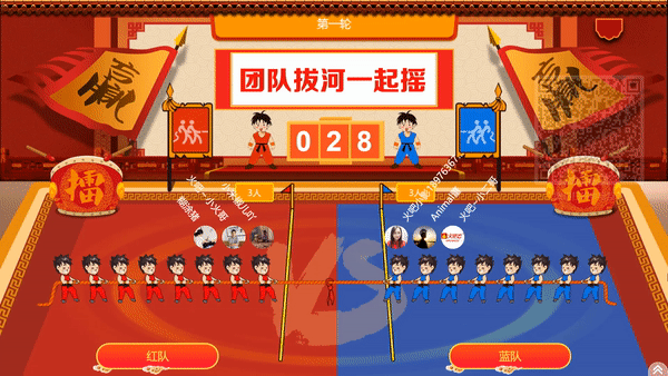 第三式:團隊拔河 集體薅羊毛的招式來了,這不僅是贏獎品的必殺技,咱們還能和看不慣的“甄姣晴”、“馬披鏡”廝殺一場,team作戰(zhàn)時刻到了。 玩法:通過掃碼選擇支持的隊伍,游戲開始后全員競速搖手機。